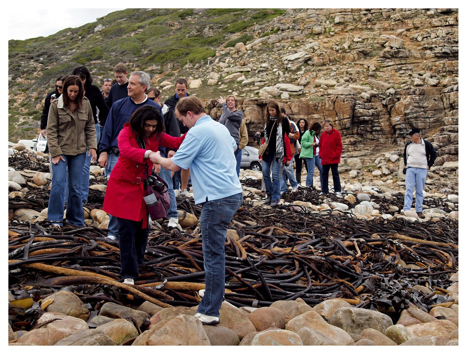 One of the students on our trip had lost her mother two years ago that week. Since her mother loved to travel, she takes a bit of her ashes on every trip so she can sprinkle them all over the world. She invited us to the waterside for a ceremony, which was a really beautiful, touching and personal tribute to her mom. To get out there, we had to climb out over many yards of slippery seagrass and rocks. We formed human chains to help each other, which was actually a neat bonding moment on the first day, since we didn’t really know each other yet. And, miraculously, no one broke an ankle. Before departing the area, we took a group photo in front of the official Cape of Good Hope sign and drove back toward the city.