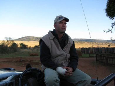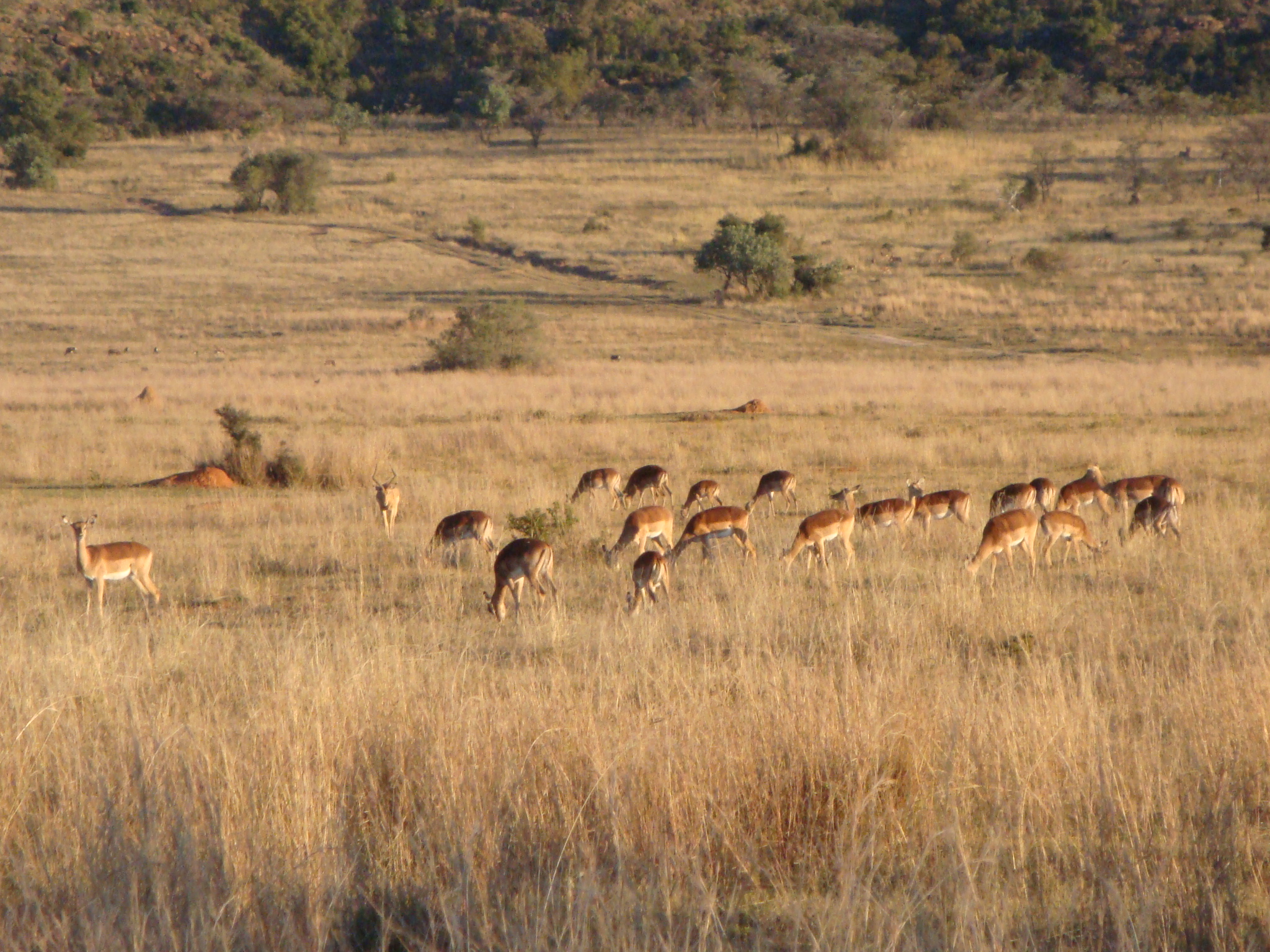 We returned to the lodge for four o’clock tea service — there was certainly no absence of feeding on this trip. Then we loaded our cars for the drive — our guide was Gareth, a very fine specimen of a bush man, and also a photographer on the side for BBC and African Geographic. Early on in the ride we saw two male impalas that looked like they were beginning to spar. Gareth jumped and grabbed the case on the seat next to him, which I was convinced was a rifle. But then he pulled out this huge camera with the longest lens known to man. Unfortunately, he didn’t get his shot that time.