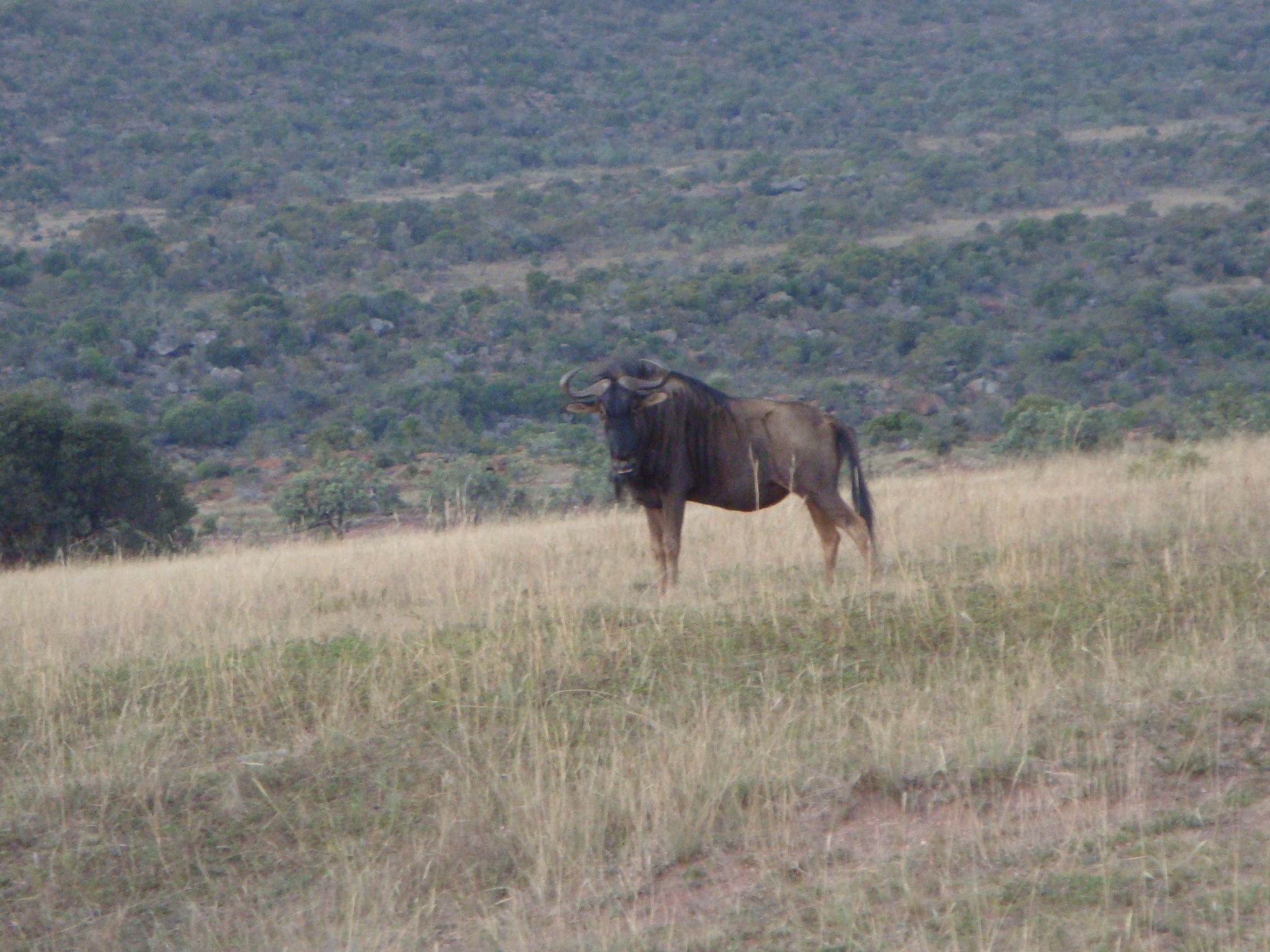 We drove out into the plains, where the animals just wander wherever they feel. Two rhinos came right up to our vehicle. The guides told us that while we are in the car, the animals just see us as one, boxy unit. But if you stand, it breaks the silhouette and they can be threatened and charge. So we sat. On the ride we saw impala, more warthogs (not like Pumba at all), eland, one zebra and plenty of gnu (or wildebeest). We followed some elephant tracks for awhile, but never saw the beasts themselves. Same with predators — no leopards or jaguars.