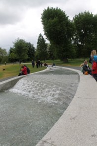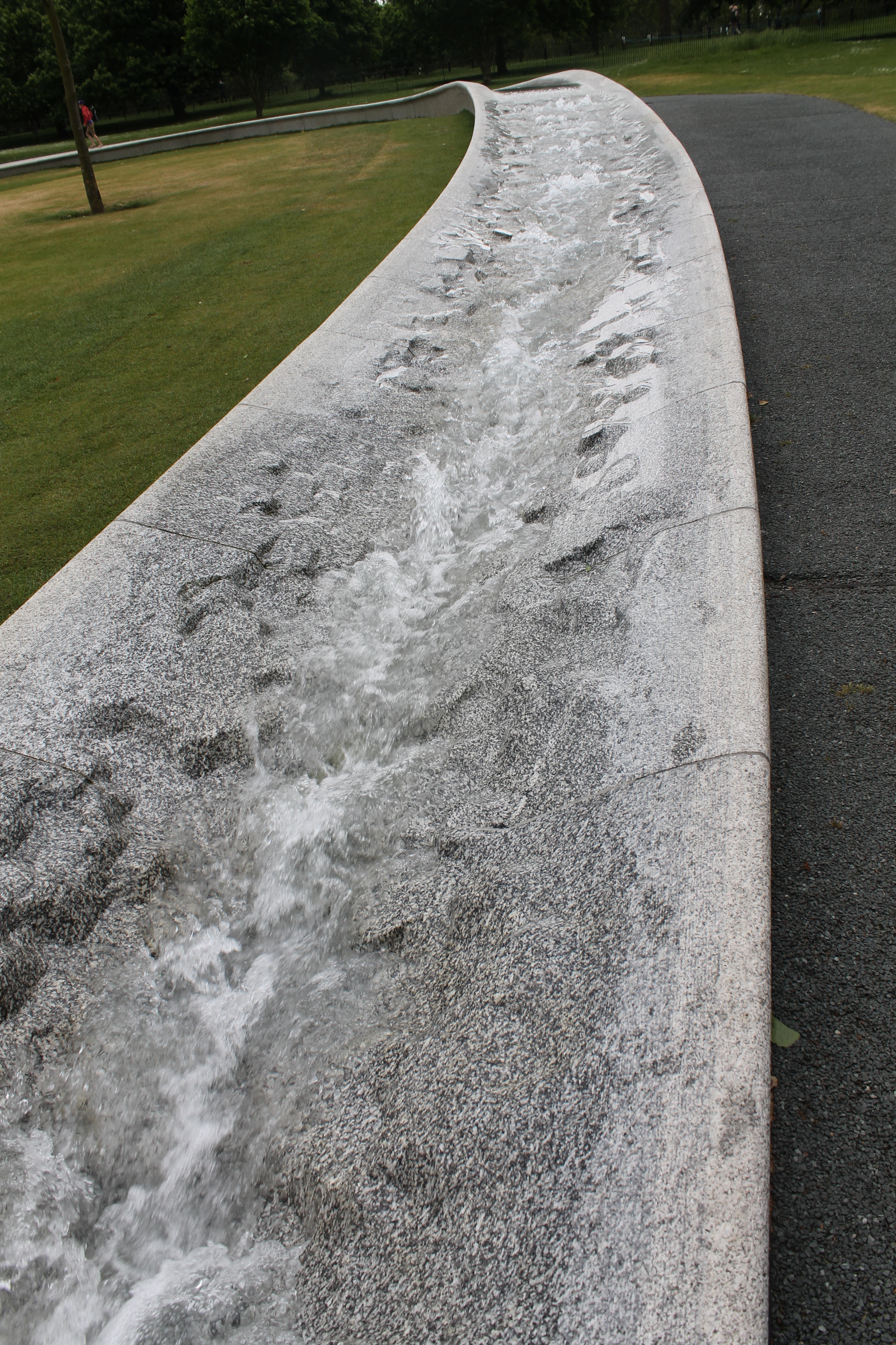 On my park meandering, I happened on the Diana, Princess of Wales, Memorial Fountain. Well, it’s a big loop of cement through which water flows — at times smoothly and calmly, at times bubbly and a little violently. I tried not to read too much into that as a metaphor for her life. Families and children definitely love it, as they jumped through the water or dangled their feet into it despite the cool and blustery weather.