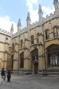 We continued past the Radcliffe Camera and the famous Bodleian Library. The Bodleian Library is one of the largest libraries in England — the Harry Potter movies were filmed there, and apparently, with most of the steps you take in Oxford, you walk over millions of archived books in sub-street level vaults. On the other side of the courtyard from library is the Tower of Five Orders, with each column highlighting the five major types of architecture: Doric, Tuscan, Ionic, Corinthian and Composite. That’s a sight my father and stepmother, the architects, would completely nerd-out over.