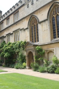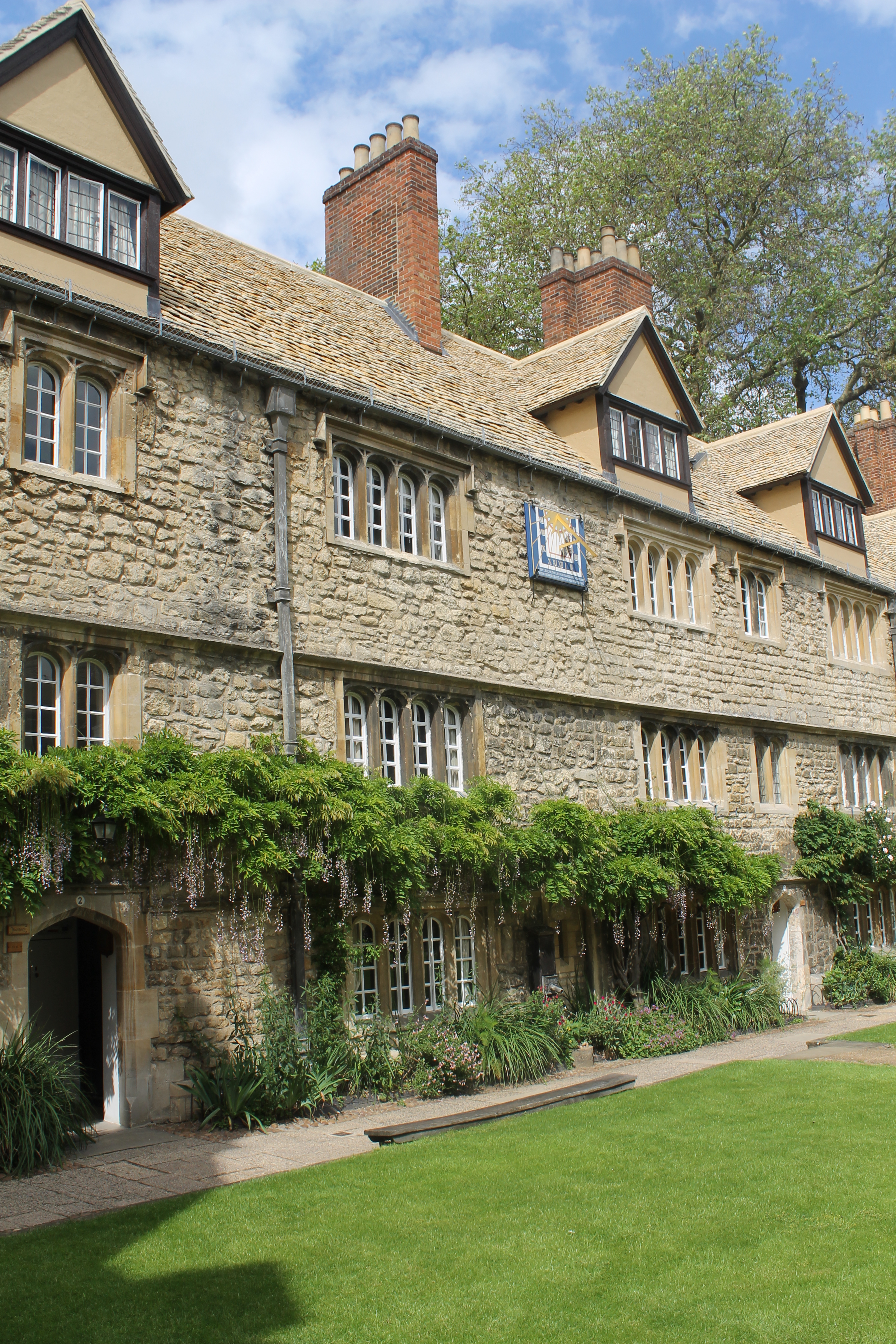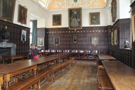 Richard took us into Jesus College to give us an idea of what one of the colleges is like — we walked through wrought-iron gates and a wood-paneled entryway, past a windowed reception area and into a manicured courtyard. We didn’t go into the living quarters, but toured the dining room and chapel. The dining room had a very “Harry Potter” feel, though on a much smaller scale. Queen Elizabeth I was a patron of this particular college, so the room was decorated with her bust and several portraits.