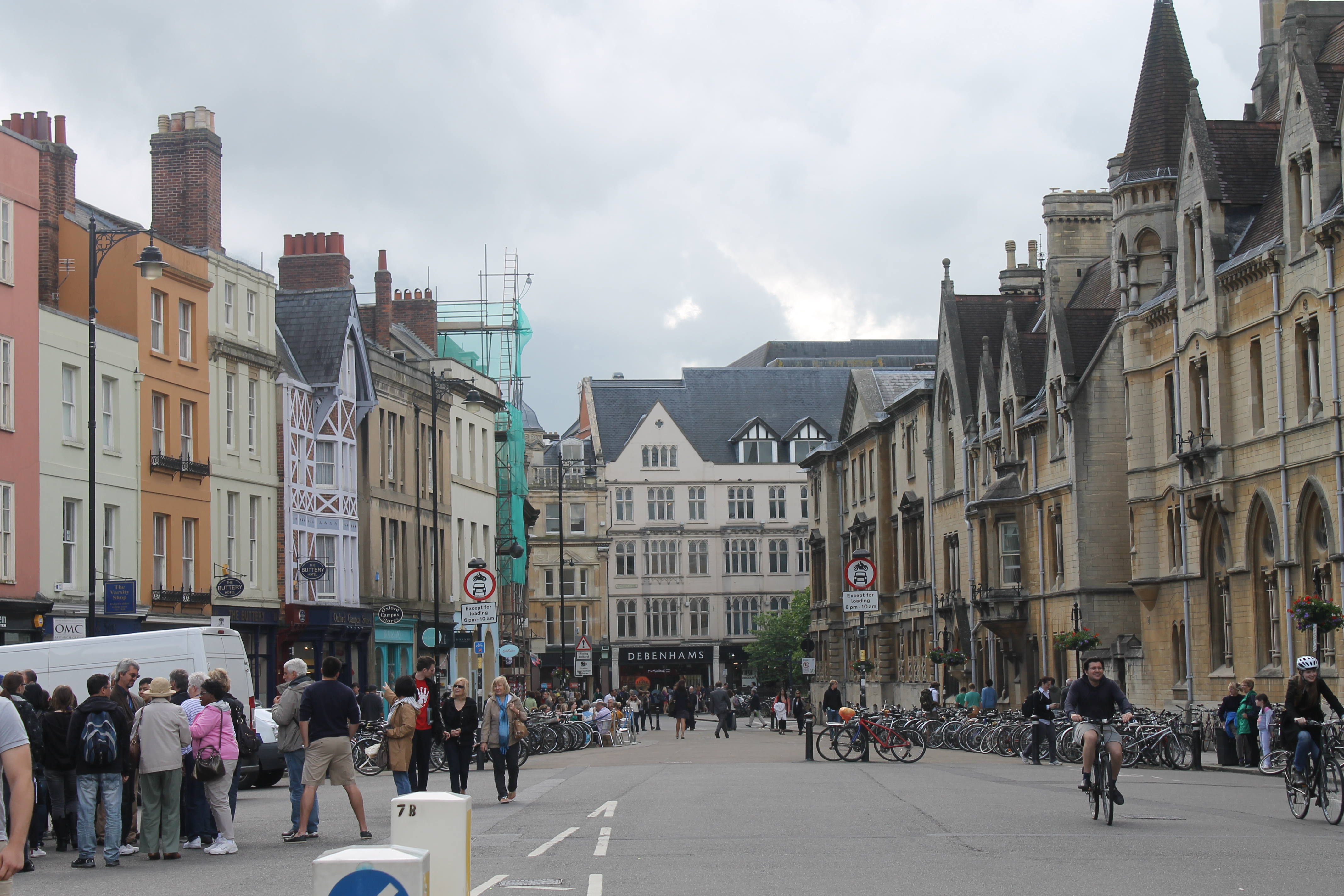 We stepped off the coach into the bustling city of Oxford for the second walk of our day tour. Richard had told us that students at the university were in the middle of exams, and sure enough, he pulled us to the side of the street to spy on a student in full robes, which they are required to wear to exams, as he mounted his bicycle nearby.