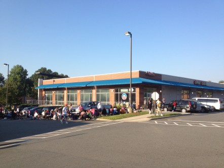 At about 9:30 a.m., things started buzzing. The office prepared to open and some staff members came out to warm the crowd and pass out donuts. Everyone was pumped.
