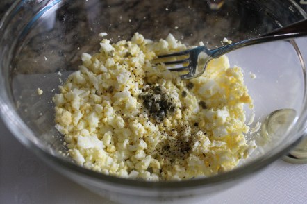 Chop the capers and add them to the eggs.